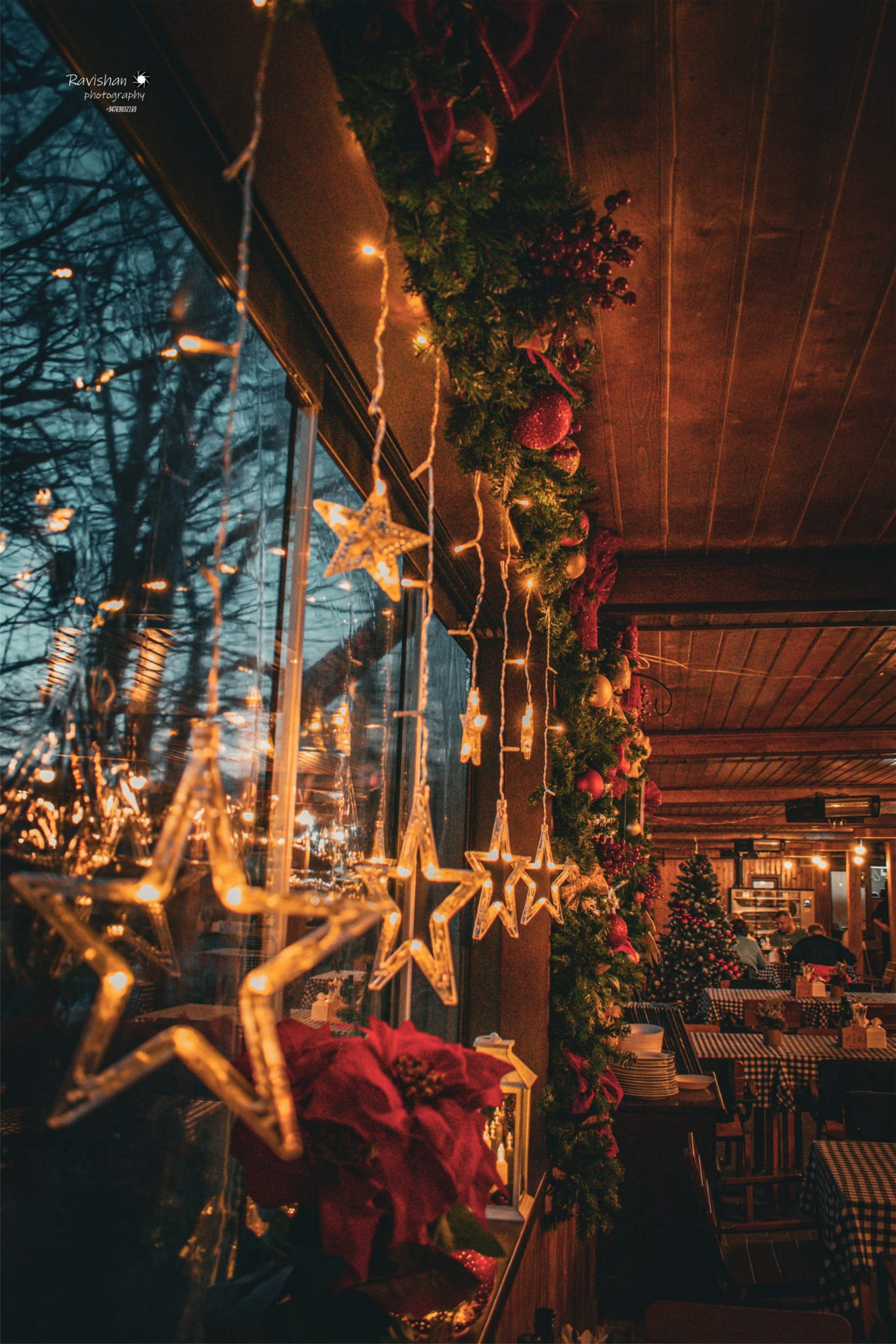 Într-o seară rece de decembrie, când cerul avea culoarea albastrului adânc și pașii trecătorilor se pierdeau în liniștea zăpezii, restaurantul s-a transformat într-un adevărat adăpost al poveștilor. Stelele luminoase atârnate la geamuri păreau să danseze odată cu respirația blândă a fericirii, iar ghirlandele roșii și verzi îmbrăcau întreaga încăpere cu căldură.